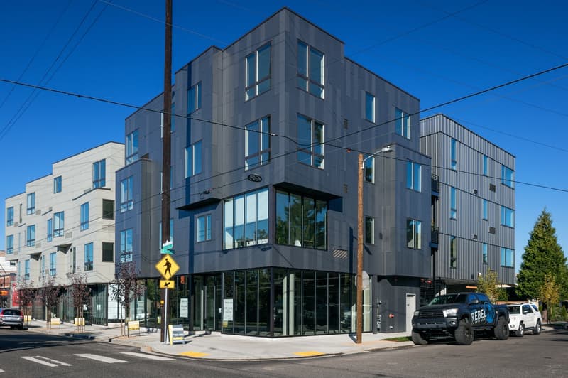 The Bridgetown is a net-zero apartment building in the Beaumont Village neighborhood of Northeast Portland. Northwest Sustainable Properties intentionally shaped a mixed-use building that serves as a natural extension of the activity along NE Fremont.